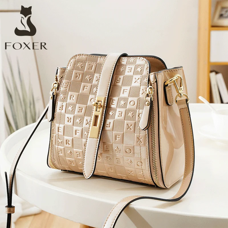 Best FOXER Women's Chic Messenger Bag Brand LOGO PVC Painting Shoulder Bags Large Capacity Ladies Fashion Handbag Small Crossbody Bag
